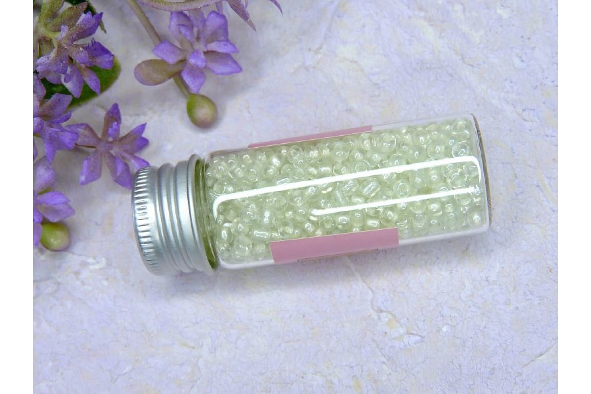 Бисер 8/0 в бутылочке полупрозрачный с цв. серединой 20 гр. (светится под УФ зеленым) - 1 шт.