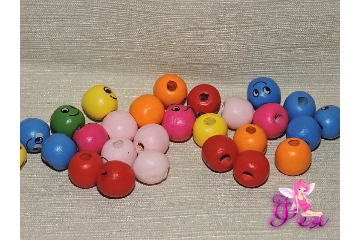 Бусина деревянная круглая "Улыбка" 14 мм -1 шт., 710-304, Китай, Бусины