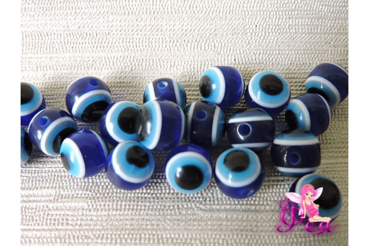 Бусина круглая 10 мм "Кошачий глаз" - 1шт, 186-110, Китай, декоративные
