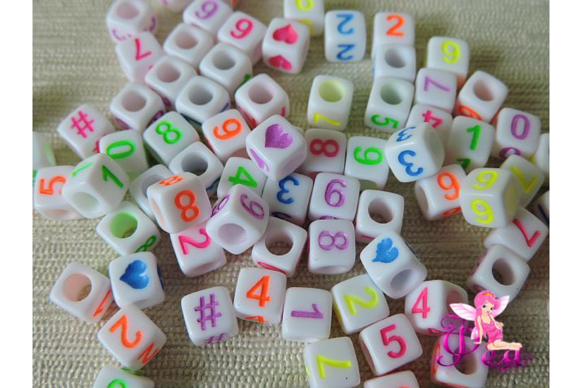 Бусинки квадратные 6*6мм " Цифры", цветные