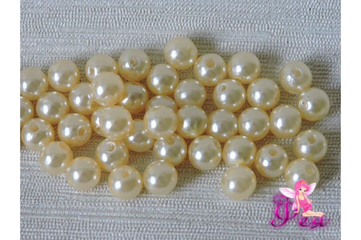 Бусины имитация жемчуга пластик 8 мм, цв. бежевый - 10 шт