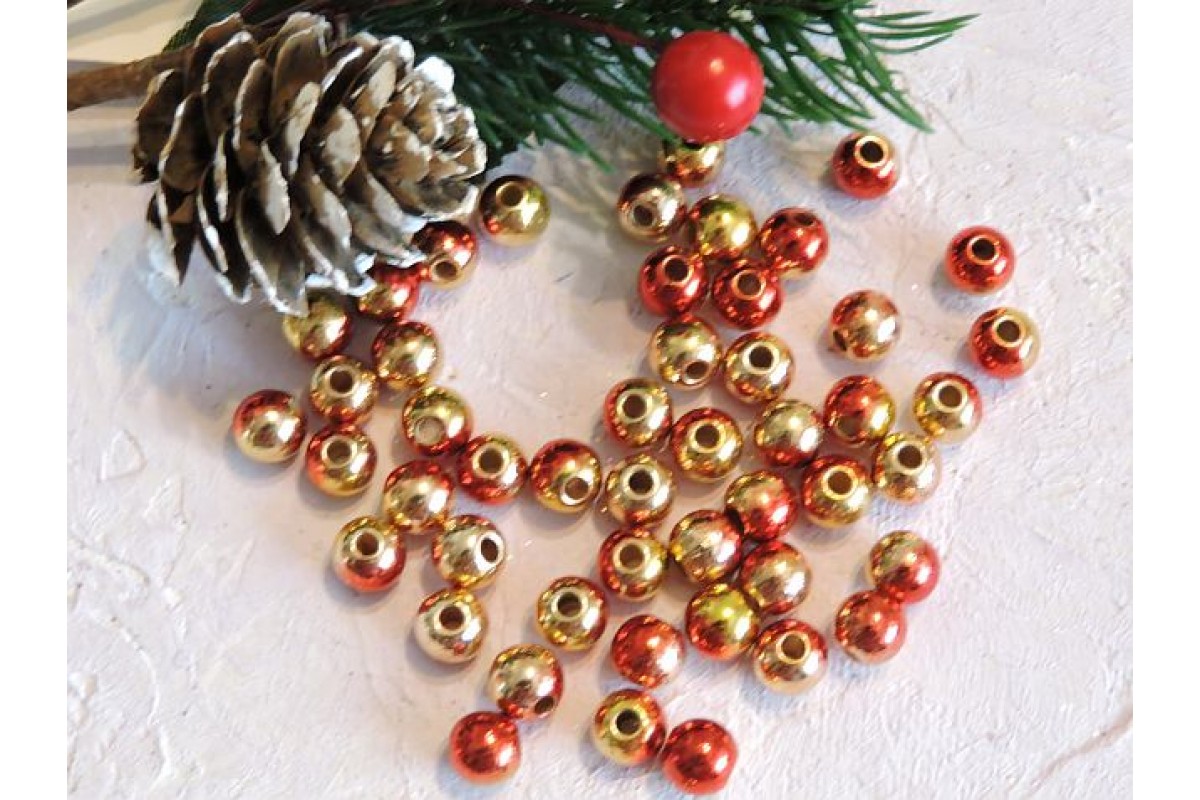 Бусины "Металлик" 8 мм, цв. красный/золото №1 - 10 шт.