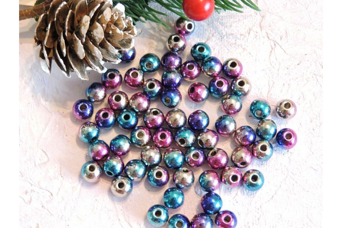 Бусины "Металлик" 8 мм, цв. мультиколор - 10 шт.