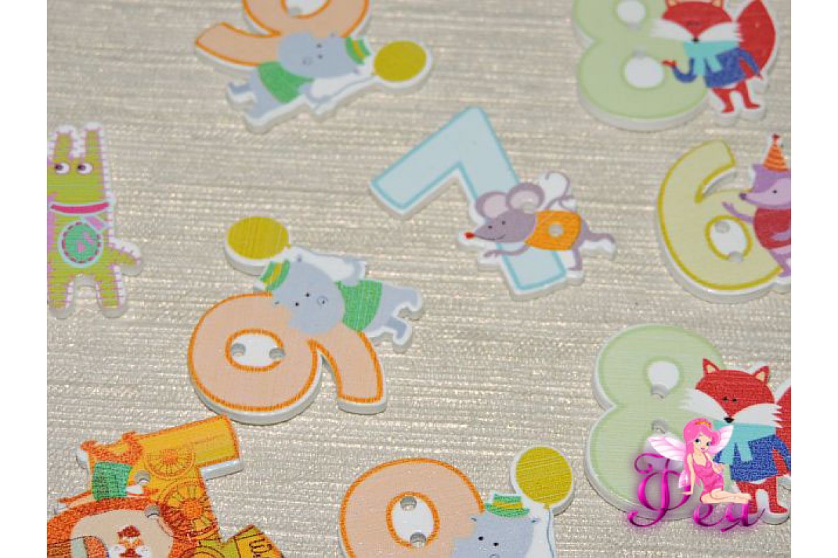 Фигурка из фанеры 30*25 мм "Цифры с животными" - 1 шт, 710-257, Китай, Фигурки из фанеры