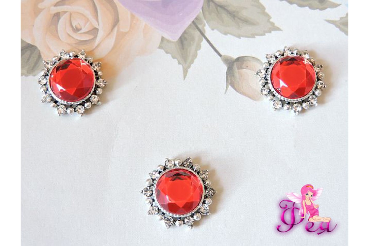 Флоризель металл 19 мм, с камнем красного цвета - 1шт