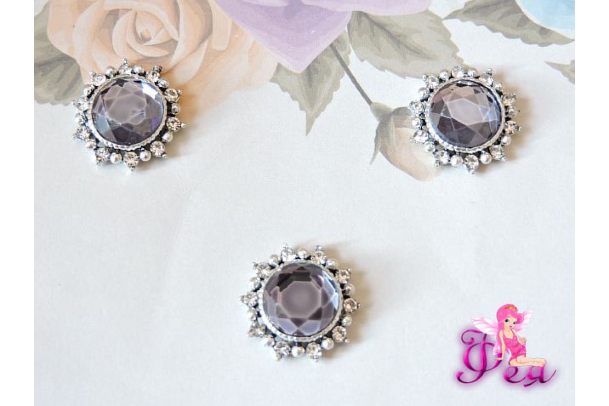 Флоризель металл 19 мм, с камнем серо-синего цвета - 1шт