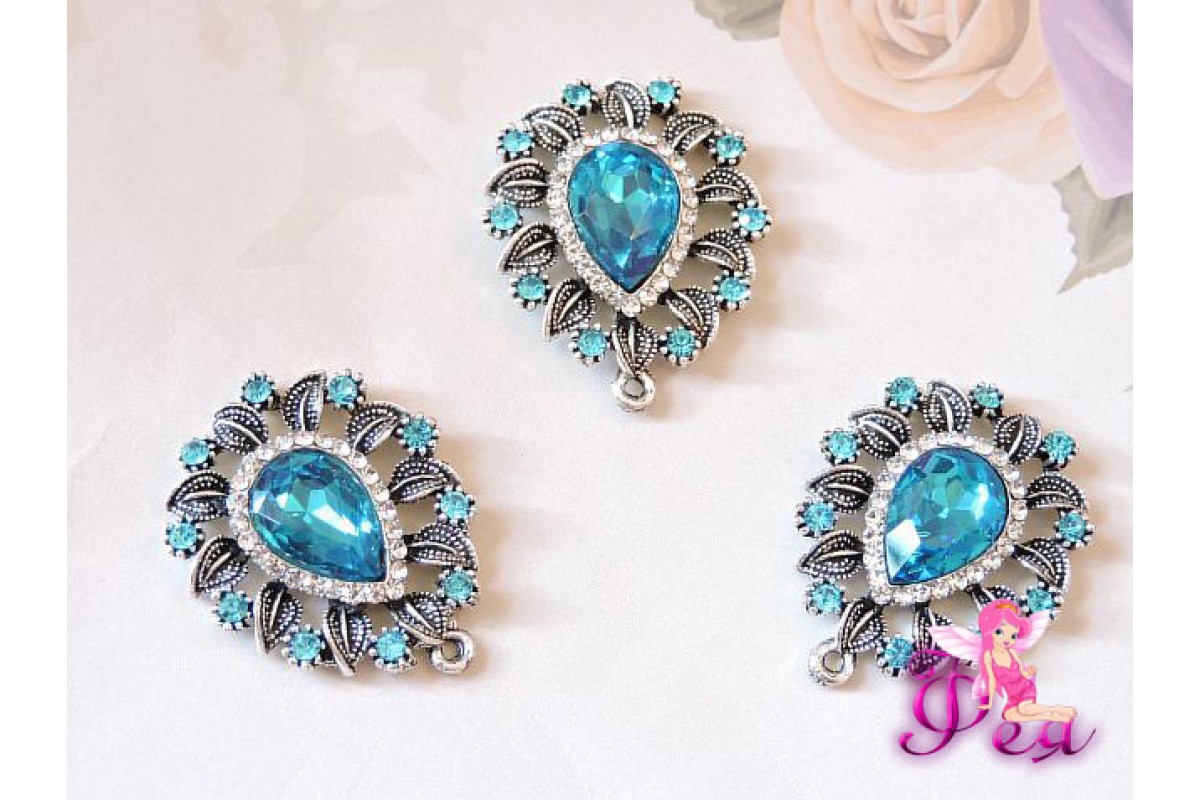 Флоризель металл 29*24 мм, с камнем голубого цвета - 1шт