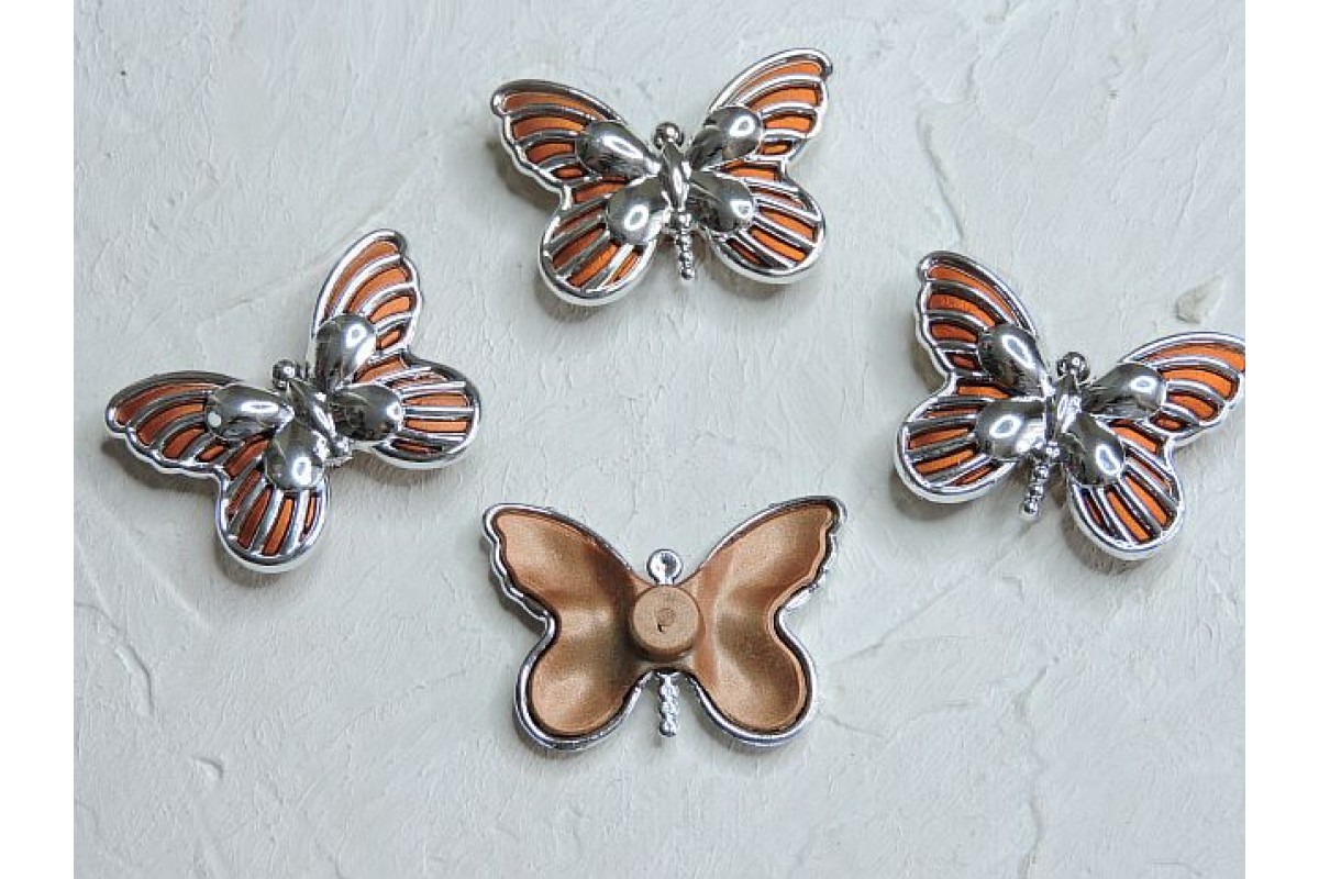 Кабошон "Бабочка маленькая" 3,8*3 см, цв. оранжевый/серебро 1 шт.