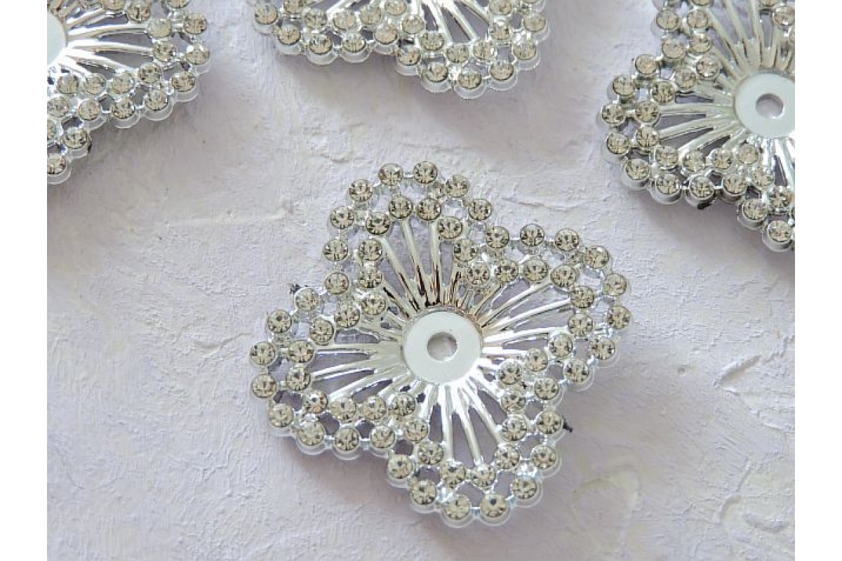 Кабошон флоризель пластик 40*40 мм, "Цветочек 2" цв. серебро - 1 шт