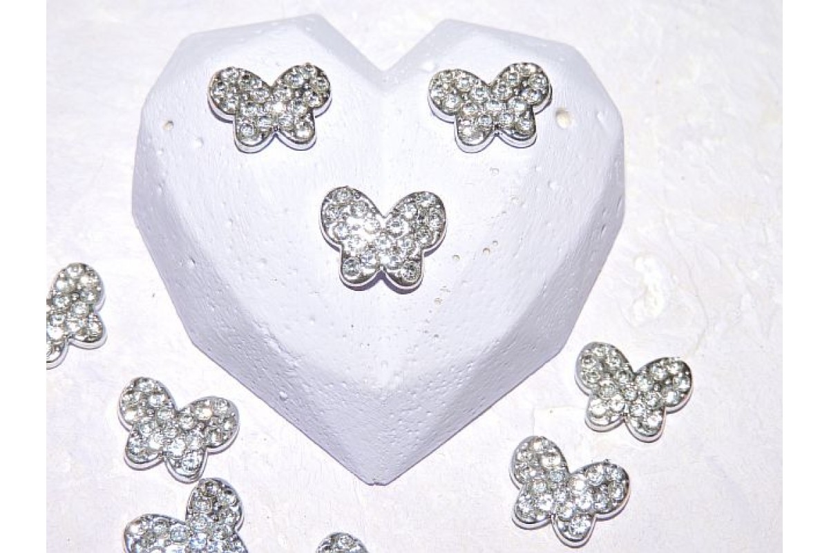 Кабошон флоризель пластик 15*11 мм, "Бабочка" цв. серебро - 1 шт