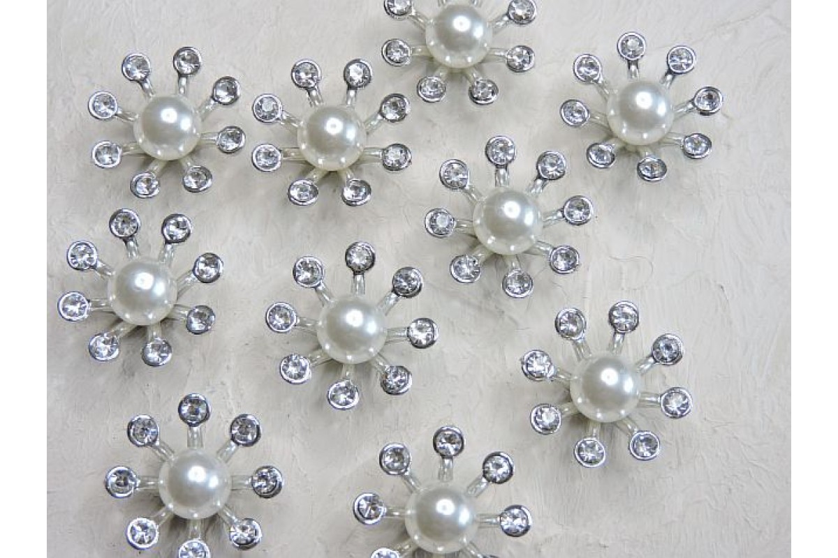 Кабошон флоризель пластик 24 мм, цв. серебро - 1 шт.