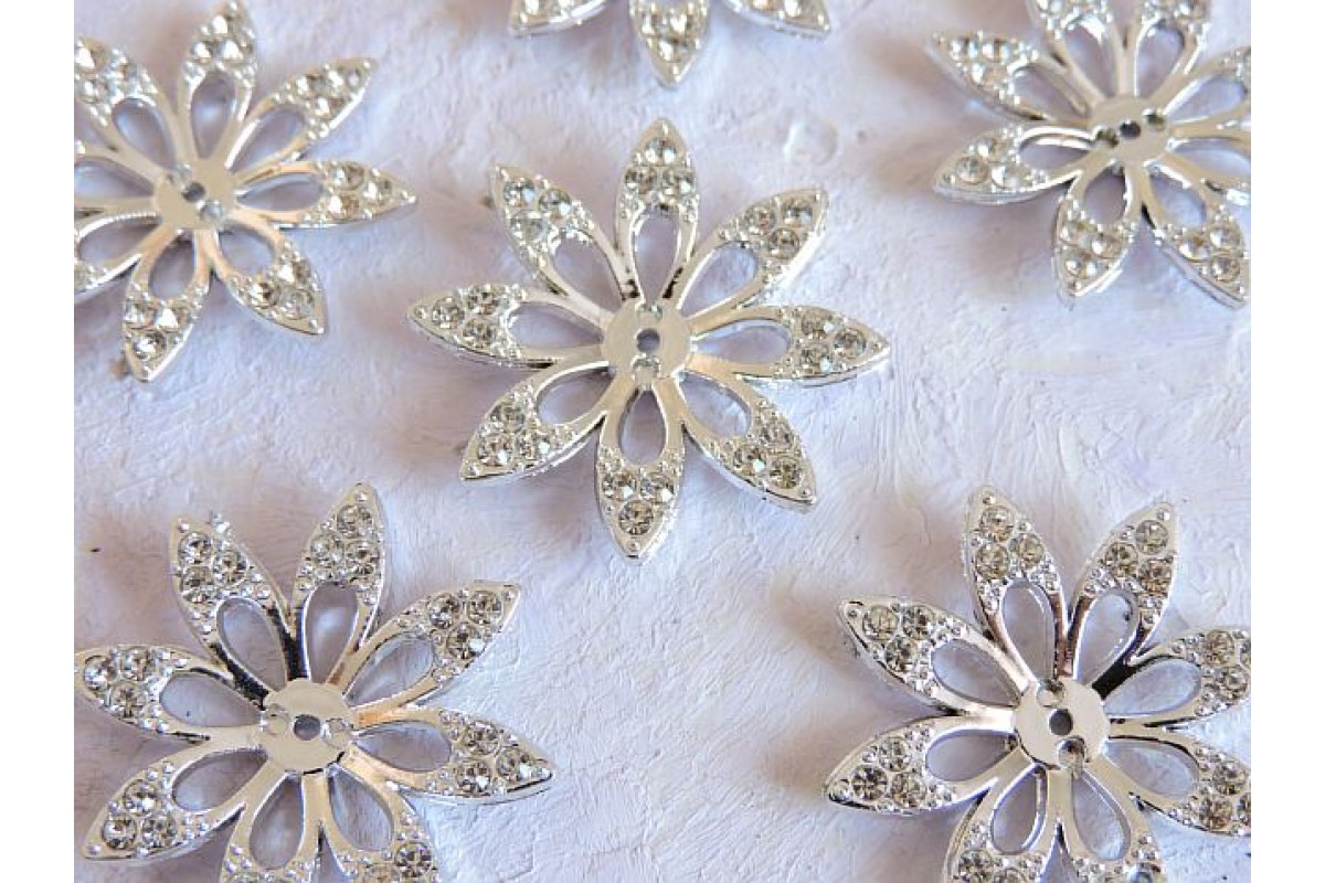 Кабошон флоризель пластик 33 мм, "Цветочек №1" цв. серебро - 1 шт