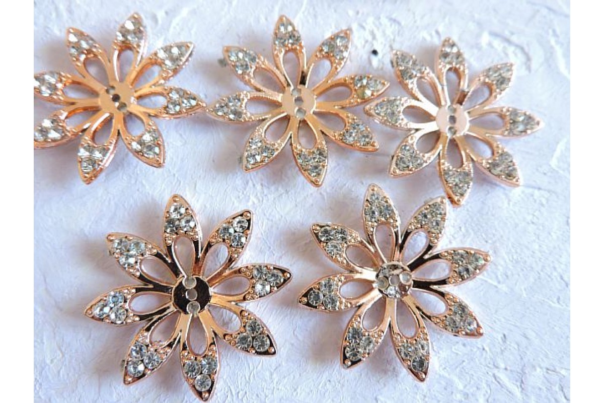 Кабошон флоризель пластик 33 мм, "Цветочек №1" цв. золото - 1 шт