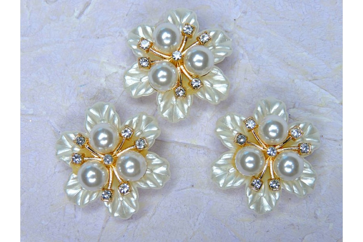 11288, Кабошон "Цветок с жемчужинами", металл и пластик 1,8*3,4 см - 1 шт., , 2.70BYN, 3378, Китай, Флоризель, тивертон, камея. Основа пластик