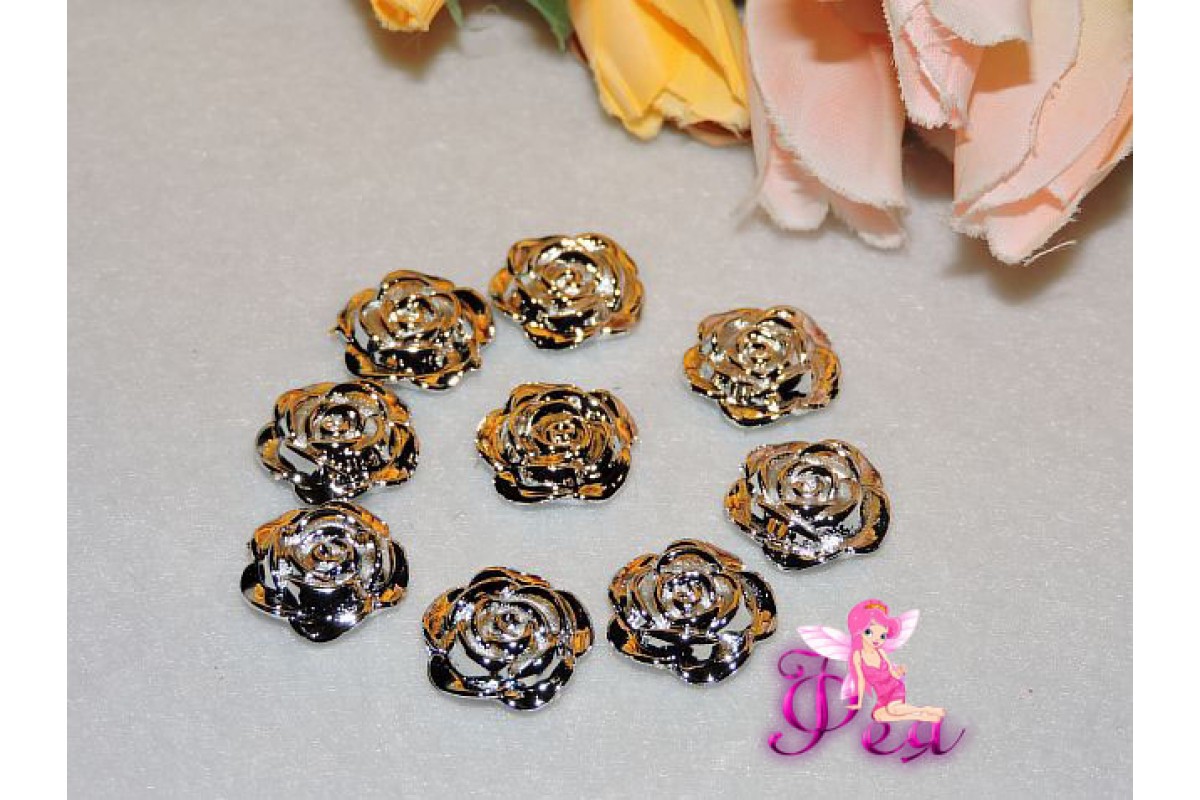 Кабошоны флоризель пластик, цв.серебро 16мм, используют для украшения заколок, одежды кукол и игрушек, для декорирования аксессуров (броши, заколки и т.д), свадебной флористите, скрапбукинге и в другом виде творчества.