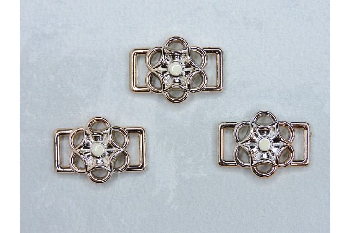 Пряжка декоративная 25*18 мм, цв. золото/белый - 1 шт.