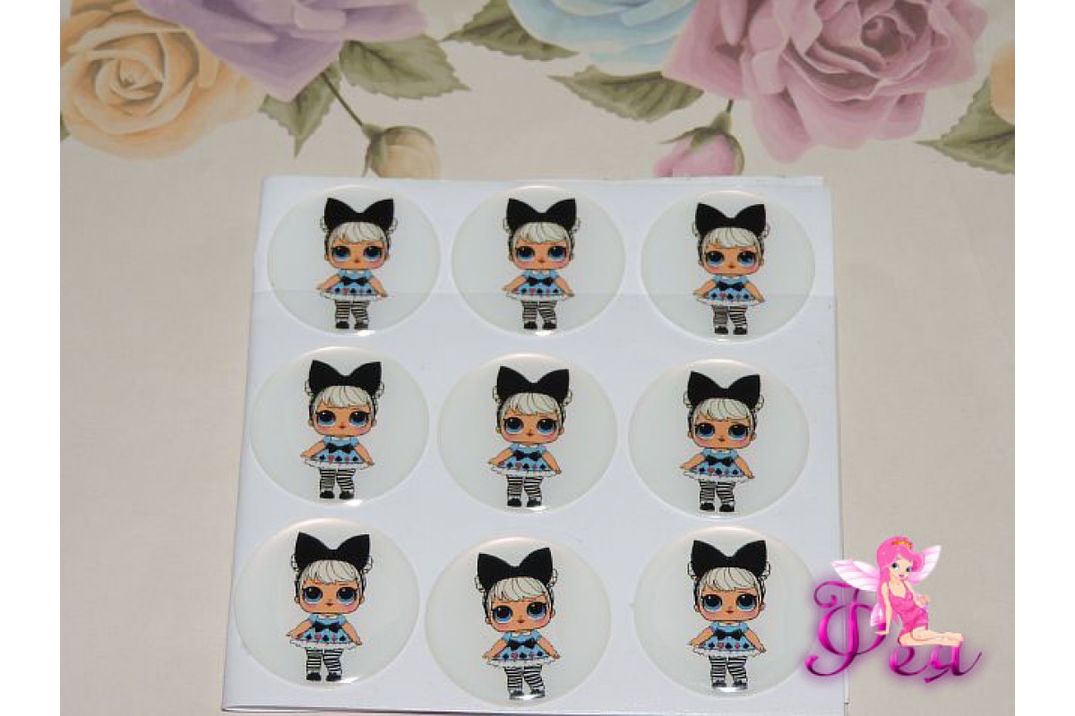 Кабошон силикон 25мм (на клеевой основе), "ЛОЛ с черным бантиком"- 1шт