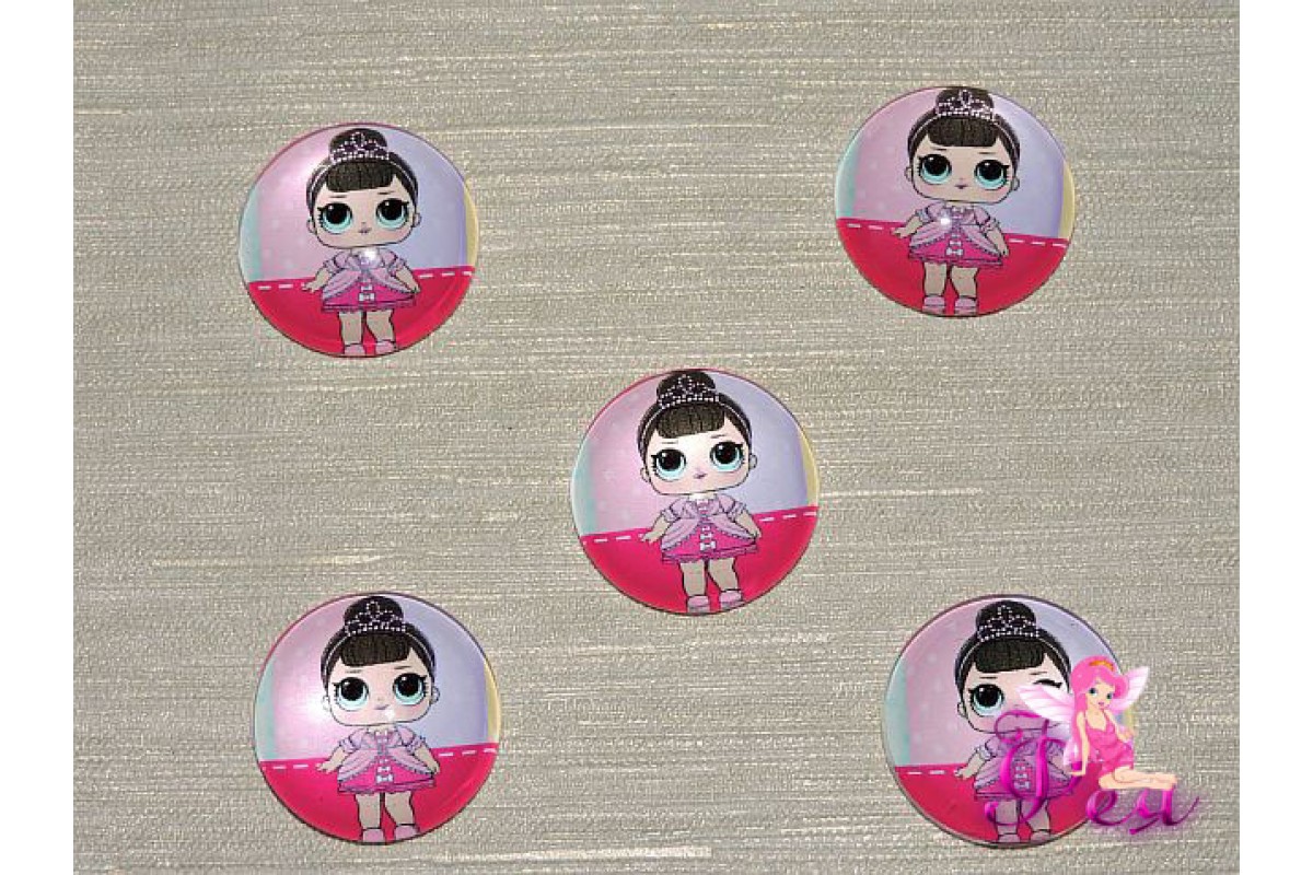Кабошон стеклянный с рисунком 25 мм "ЛОЛ с короной" - 1шт