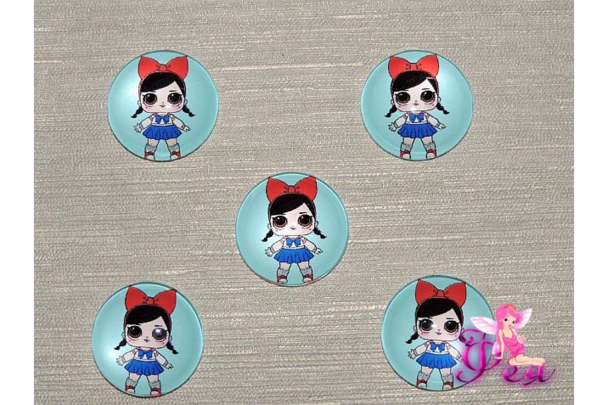 Кабошон стеклянный с рисунком 25 мм "ЛОЛ с красным бантом" - 1шт