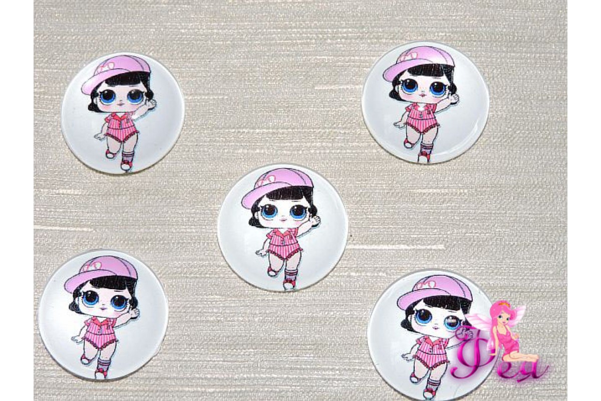 Кабошон стеклянный с рисунком 25 мм "ЛОЛ в кепке" - 1шт, 20154, Китай, Декоративные элементы