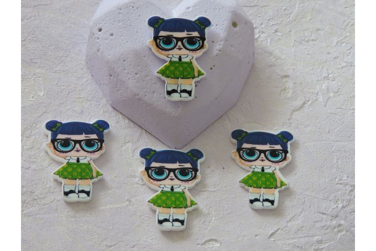 Кабошон-вырубка 30 мм "Лол школьница в зеленом платье" - 1шт