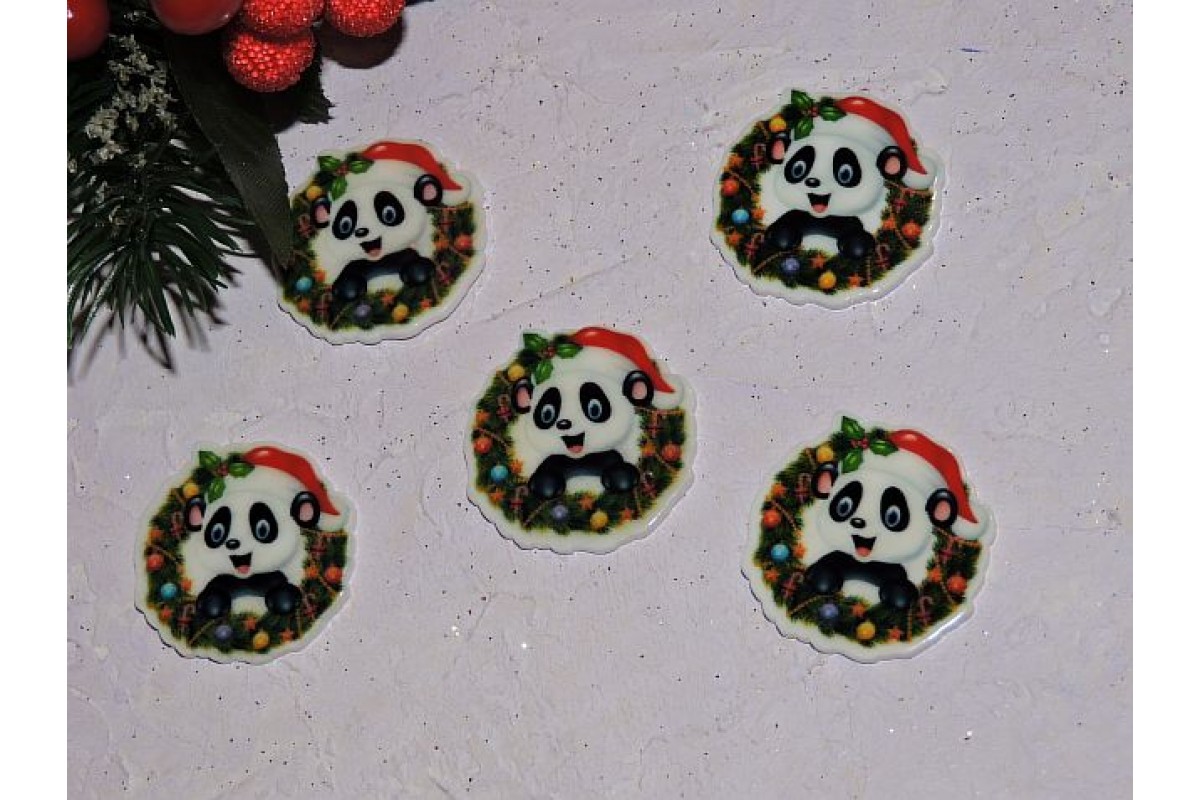 Кабошон-вырубка 3*3 см "Новогодняя панда" - 1 шт