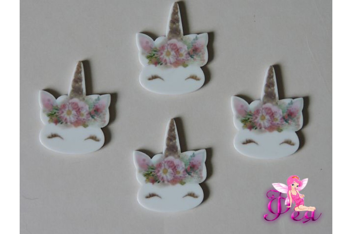 Кабошон-вырубка 35*29 мм, Единорог с розовыми цветочками (пластик) - 1шт
