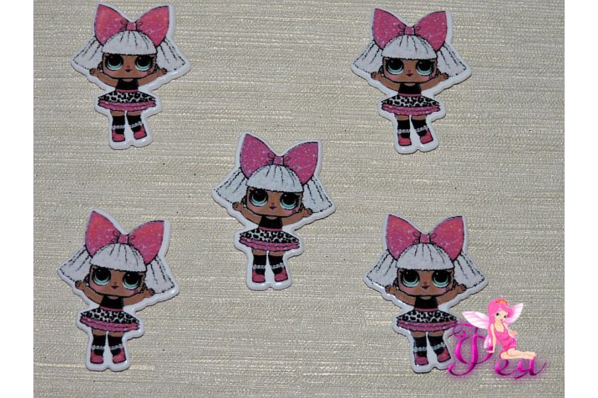 Кабошон-вырубка 38*24 мм, Лол с розовым бантом и белые волосы (пластик) - 1шт