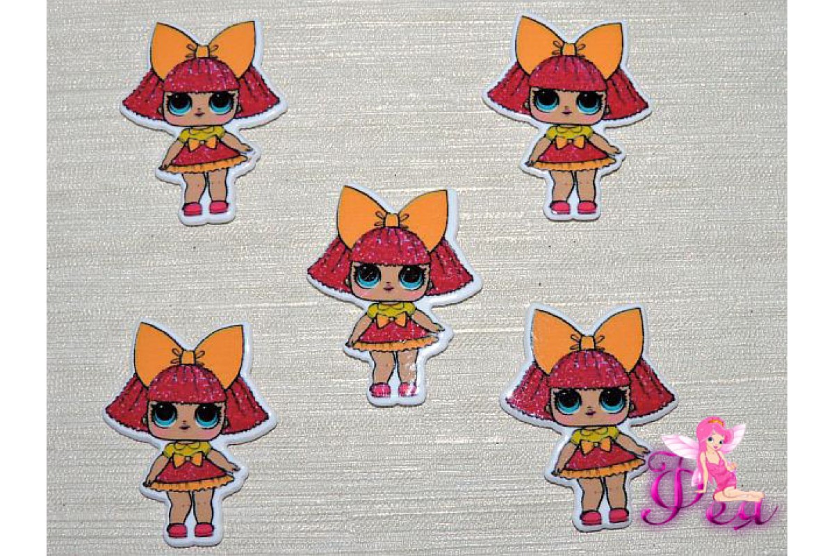 Кабошон-вырубка 39*29мм, Лол с оранжевым бантиком (пластик) - 1шт
