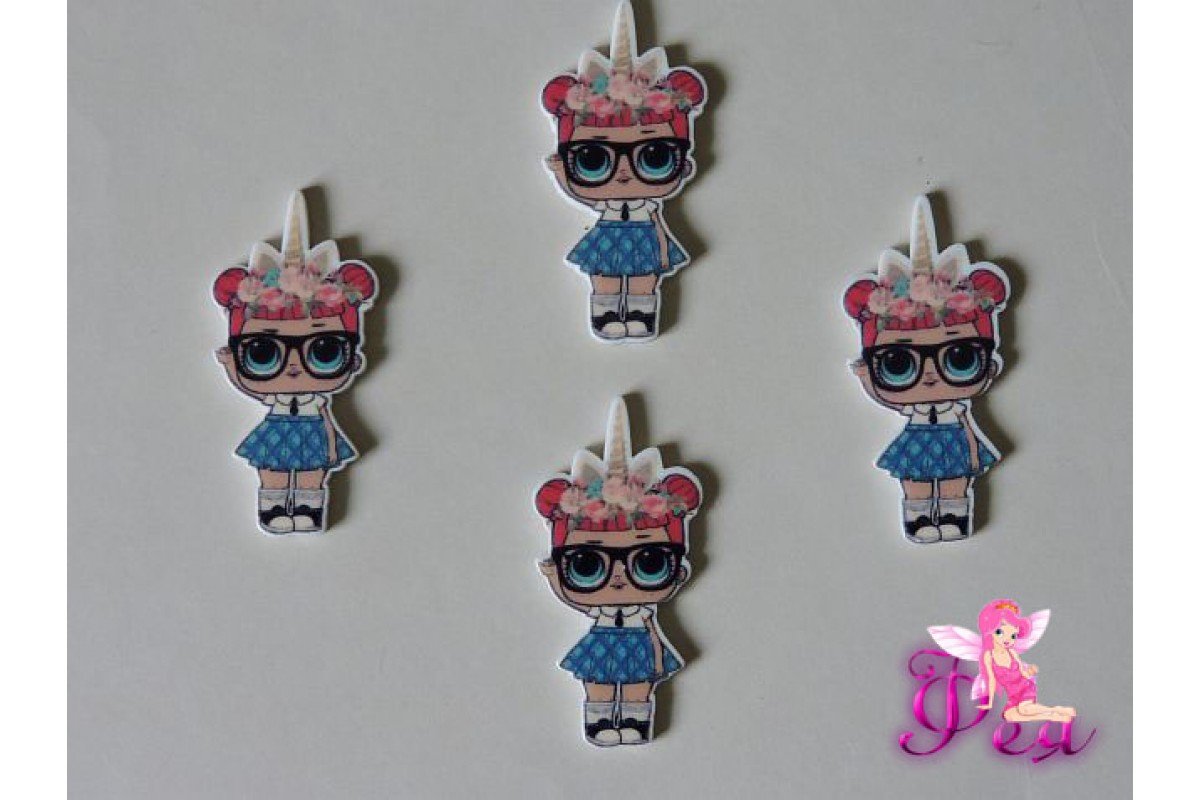 Кабошон-вырубка 40*20 мм, ЛОЛ школьница с ободком единорог (пластик) - 1шт