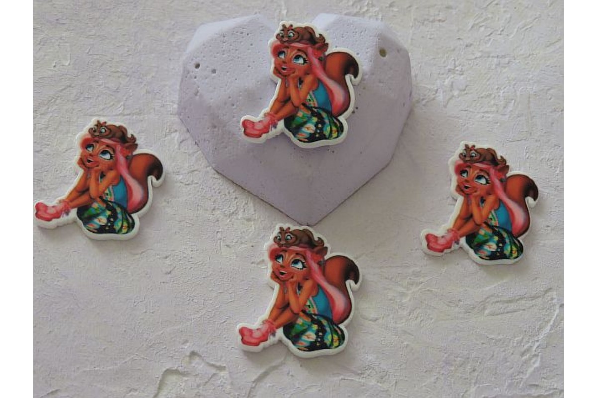 Кабошон-вырубка "Девочка-белочка" 36*32 мм - 1 шт