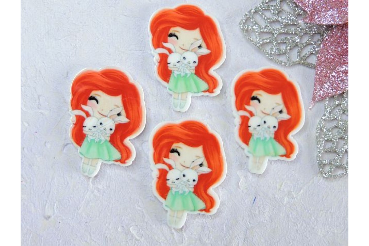 Кабошон-вырубка "Девочка с зайками" 2,7*3,6 см - 1шт.