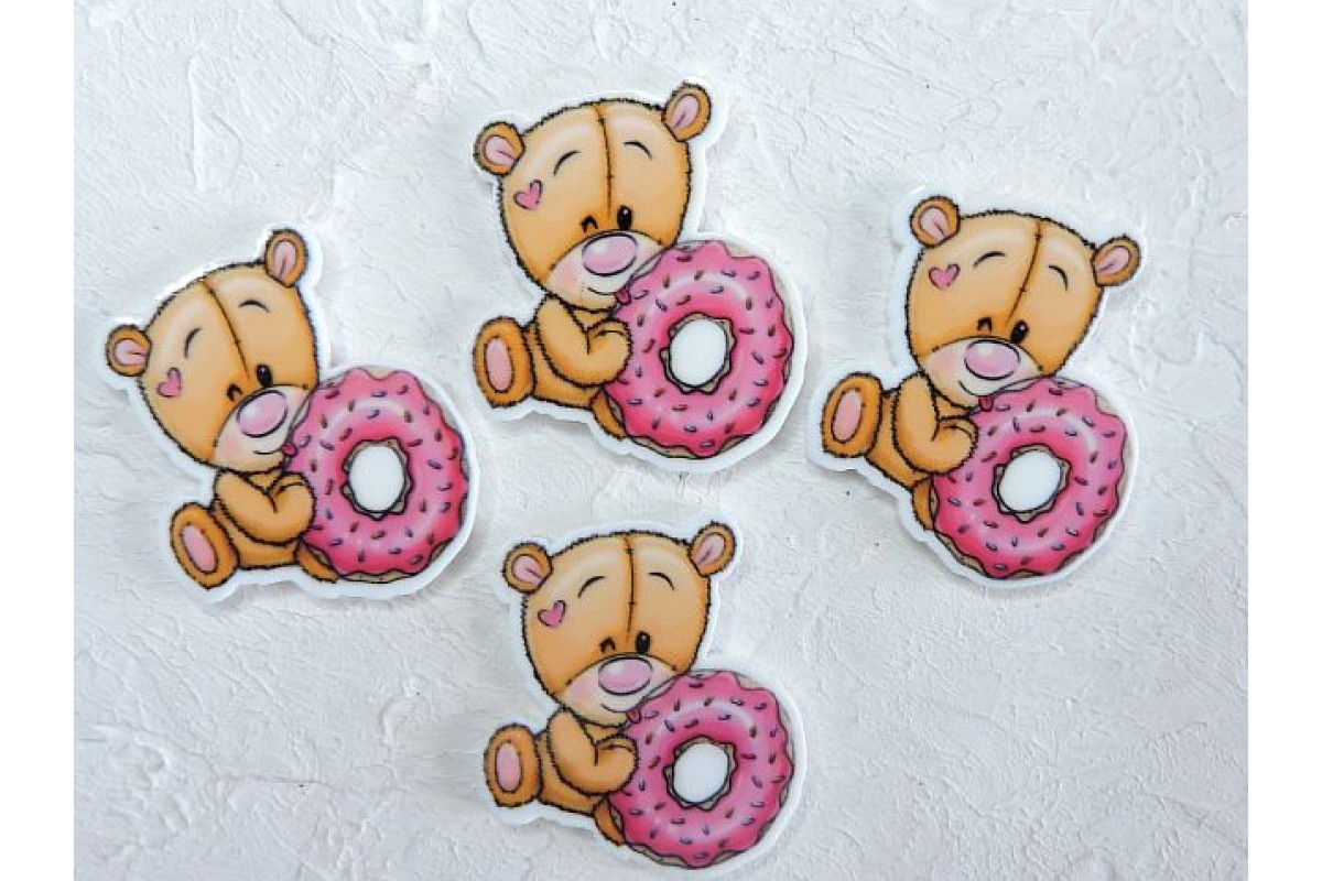 Кабошон-вырубка "Мишка с пончиком" 3,0*3,5 см - 1 шт