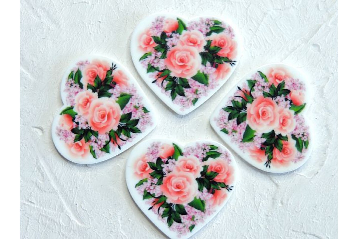 Кабошон-вырубка "Сердечко из цветов" 3,5*3,2 см - 1 шт.