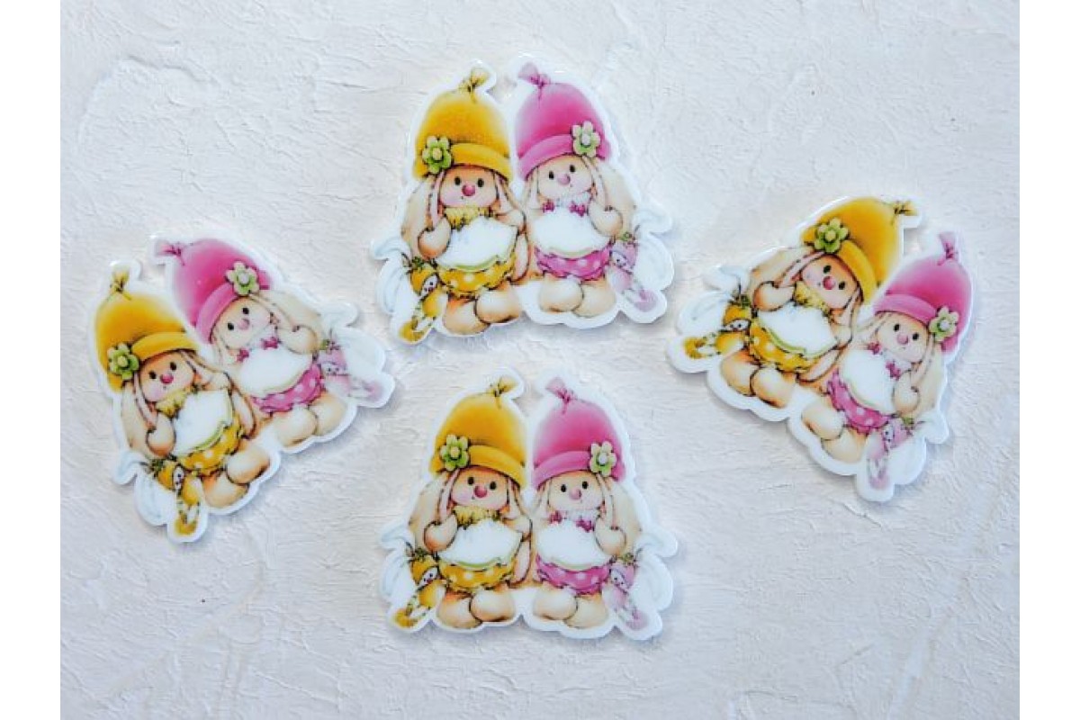 Кабошон-вырубка "Зайчики" 3,3*3,2 см - 1 шт