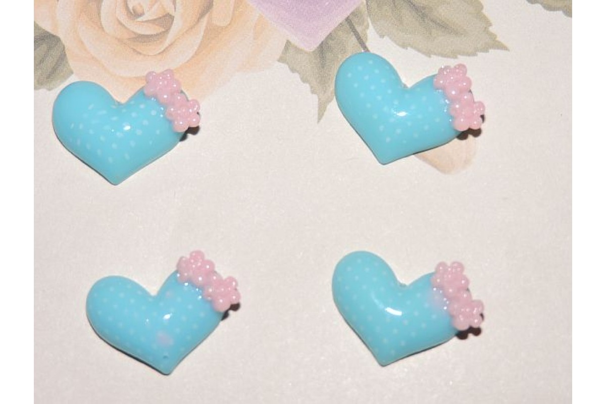 Кабошон акриловый 20 мм "Сердечко с цветочками"цв. голубой - 1шт