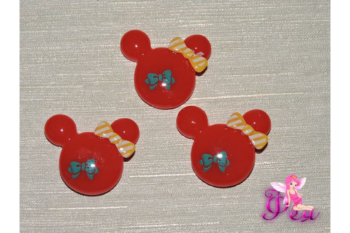 Кабошон акриловый 30 мм, "Микки", цв. красный, М 60/18, Китай, Кабошоны акриловые