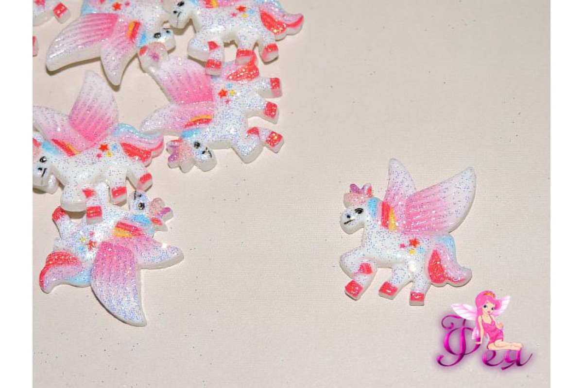 Кабошон акриловый "Единорог с крылышками" 25*30 мм -1 шт, В 225/37, Китай, Кабошоны акриловые