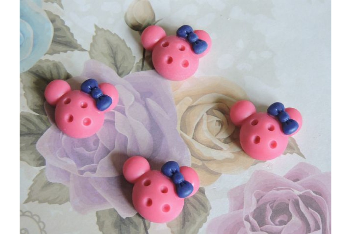 Кабошон акриловый "Мики с бантиком" 20 мм , цв. малиновый - 1 шт