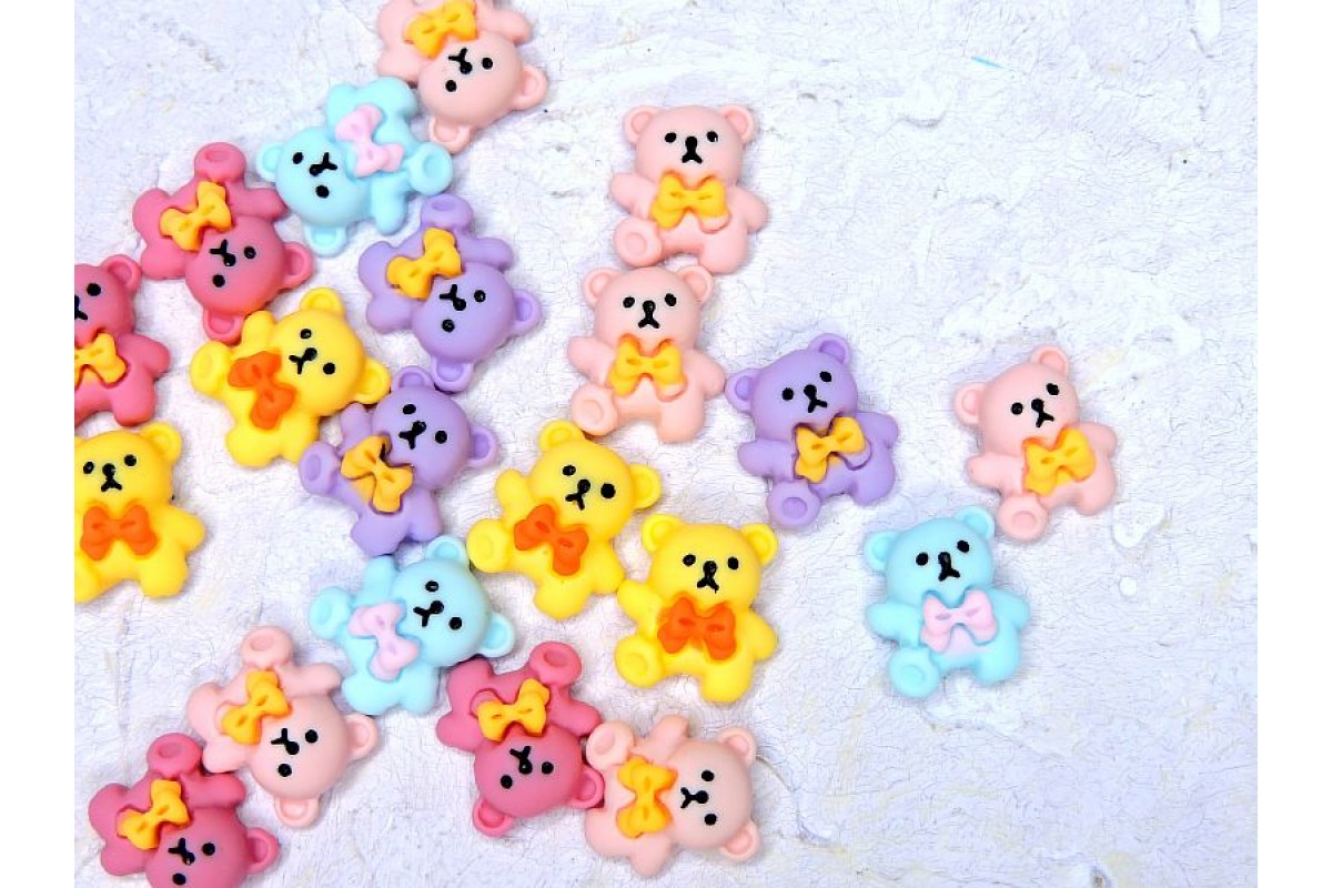 11290, Кабошон "Медвежонок с бантиком"1,3*1,4 см, цв. микс - 1 шт., , 0.72BYN, 7185, Китай, Кабошоны акриловые