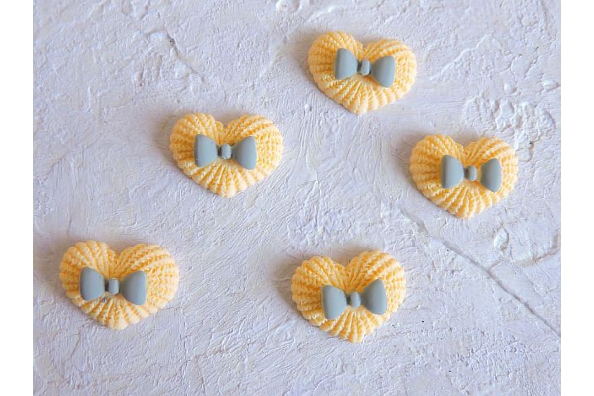 Кабошон "Сердечко с бантиком матовое", цв. желтый - 1 шт., 256-720, Китай, Кабошоны акриловые