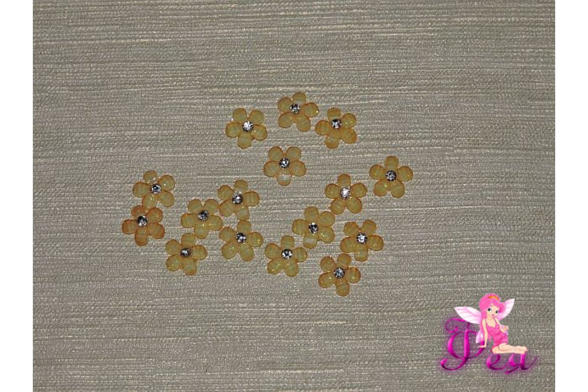 Кабошон со стразой "Цветок" 10 мм, цв. желтый - 1 шт., 0259, Китай, Кабошоны акриловые