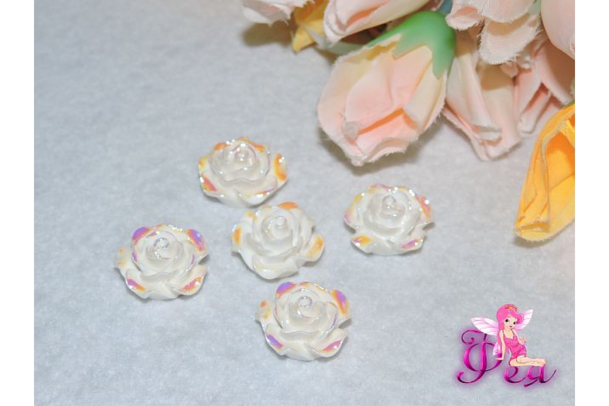 Кабошоны акриловые розы, 20мм"Роза", цв. белый