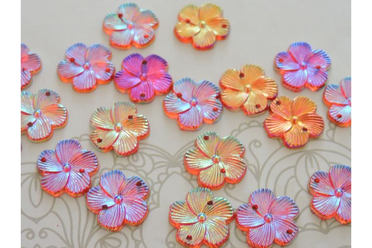Пришивные стразы "Цветок" 15 мм, цв. красный радужный - 1 шт
