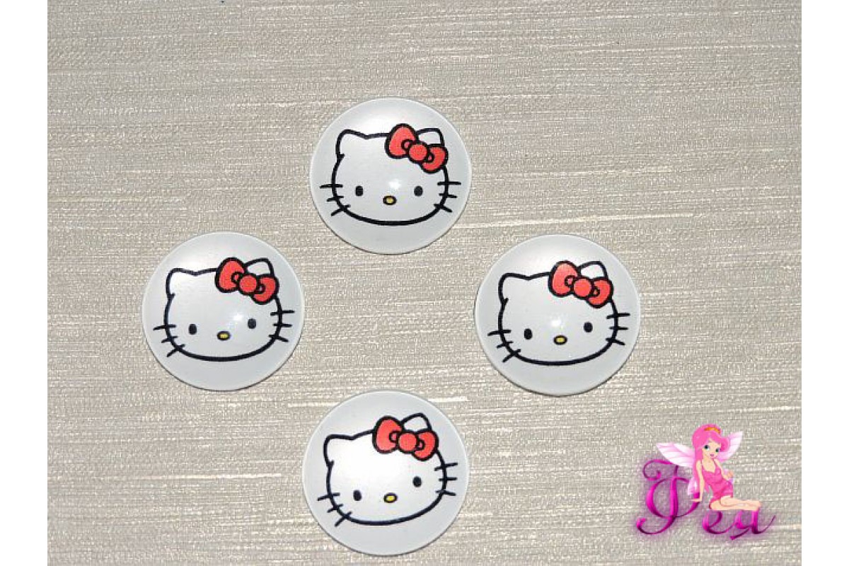 Кабошон стеклянный с рисунком 25 мм "Китти" - 1шт, М 45/18, Китай, Кабошоны стекло с рисунком