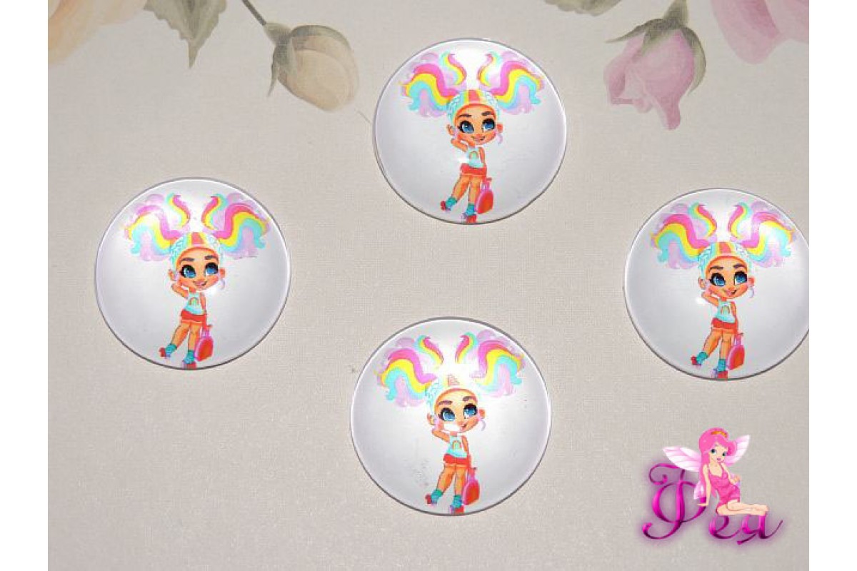 Кабошон стеклянный с рисунком 25 мм "Хэрдораблс "РАДУЖНЫЕ ВОЛОСИКИ - 1шт.