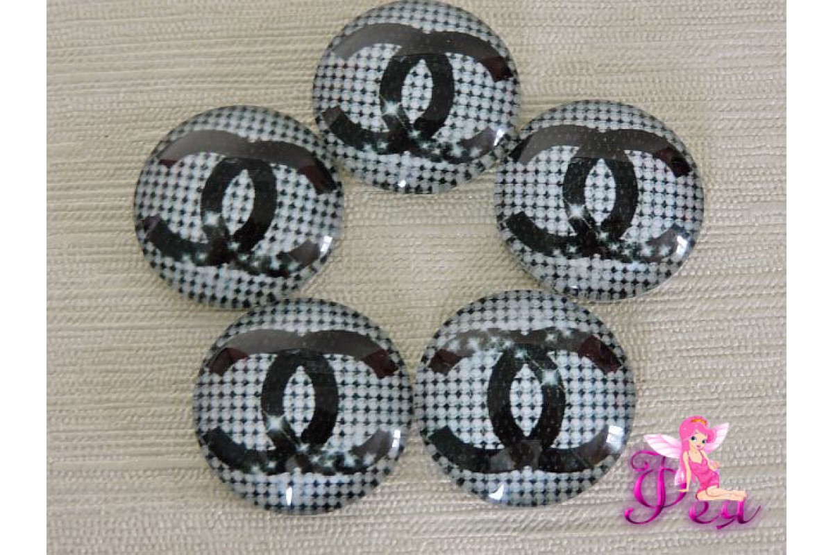Кабошон стеклянный с рисунком 25мм, "Chanel", М 25/24, Китай, Кабошоны стекло с рисунком