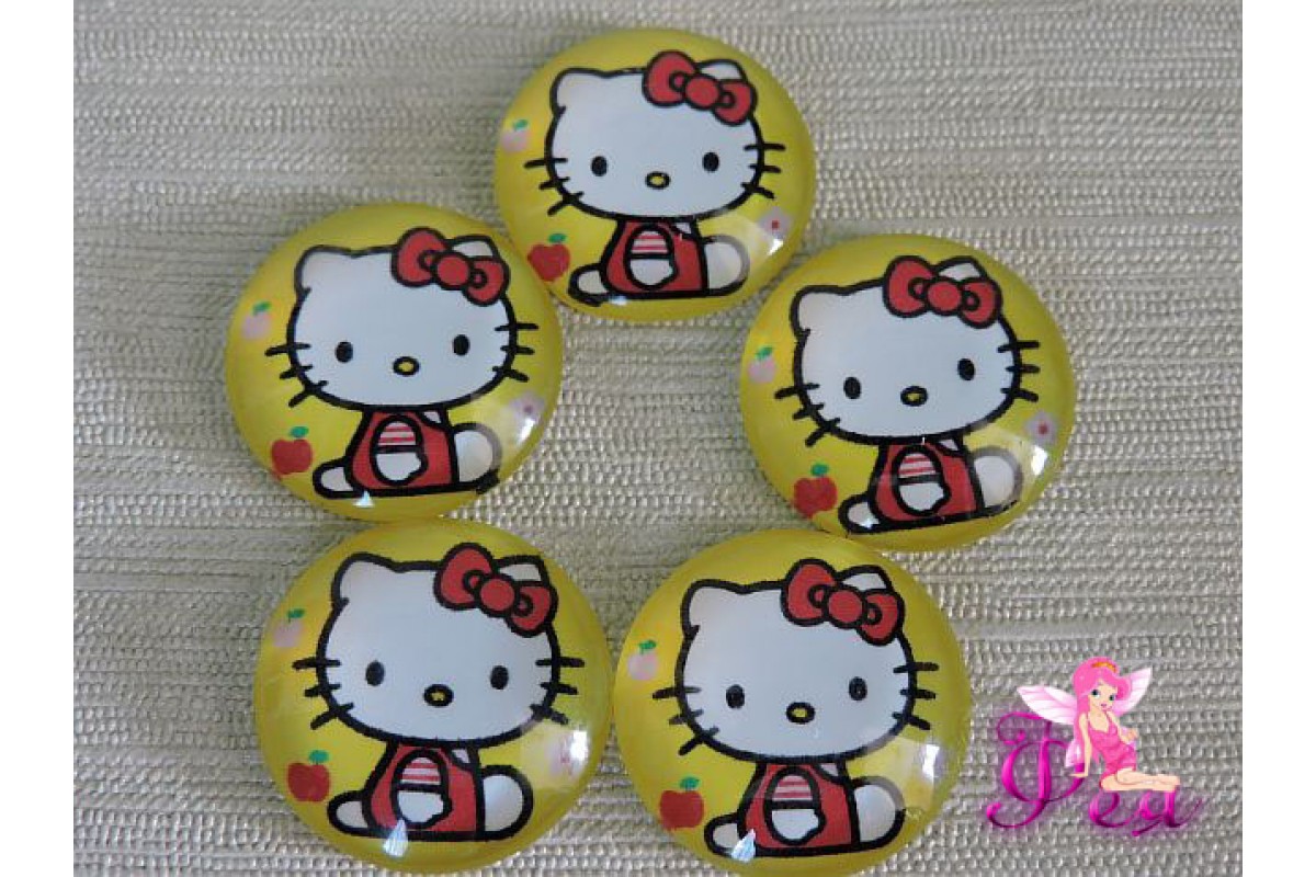 Кабошон стеклянный с рисунком 25мм, "Китти"