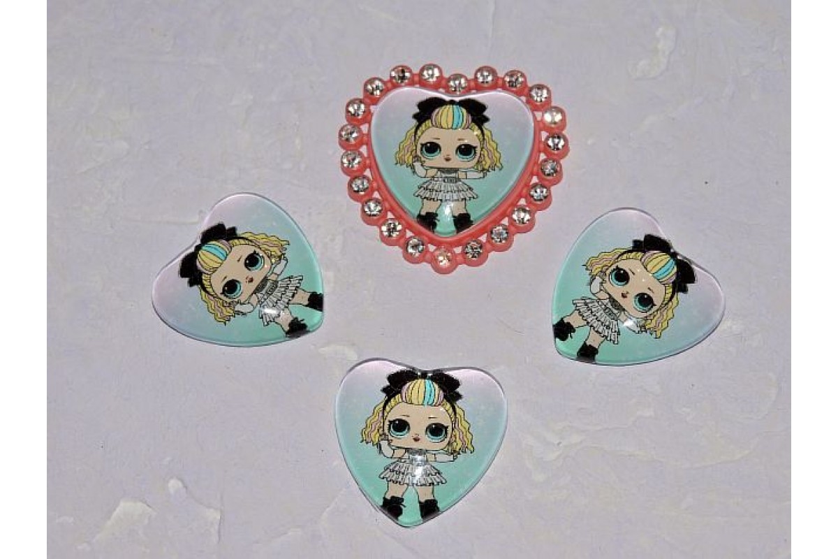 Кабошон стеклянный сердечко 25 мм "ЛОЛ" - 1 шт