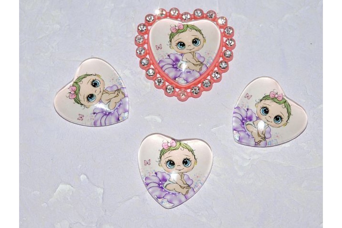 Кабошон стеклянный сердечко 25 мм "Малышка" - 1 шт, 258-229, Китай, Кабошоны стекло с рисунком